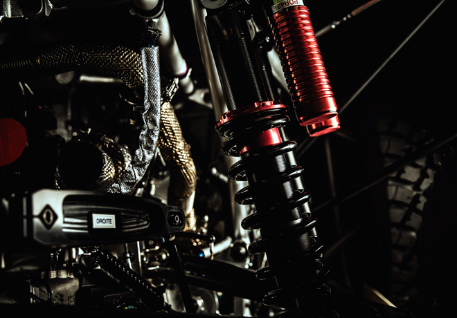 Las nuevas dimensiones del 2008 DKR16 modificó sustancialmente la distribución: las ruedas de auxilio, a partir de ahora, se instalan en los flancos del auto para bajar el centro de gravedad y mejorar el comportamiento dinámico. La nueva carrocería se diseñó especialmente para unir esta forma acentuando a la vez superficies planas y las curvas que se combinan para hacer del Peugeot 2008 DKR16 uno de los looks más atrapantes presentes en el Dakar.