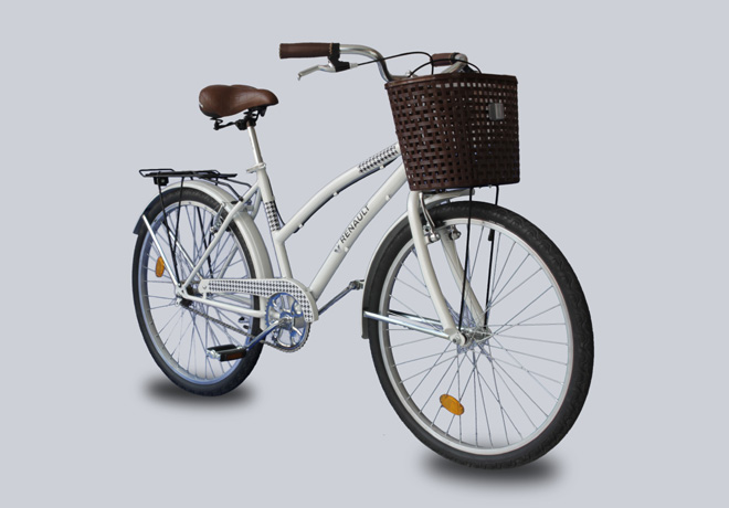- Paseo: Como opción para tiempo libre, y un perfil de usuario femenino, la bicicleta de paseo tiene un diseño particular en el que se destaca su cuadro de acero, guardabarros, portaequipaje en la zona trasera, canasta delantera, asientos y puños de cuero.