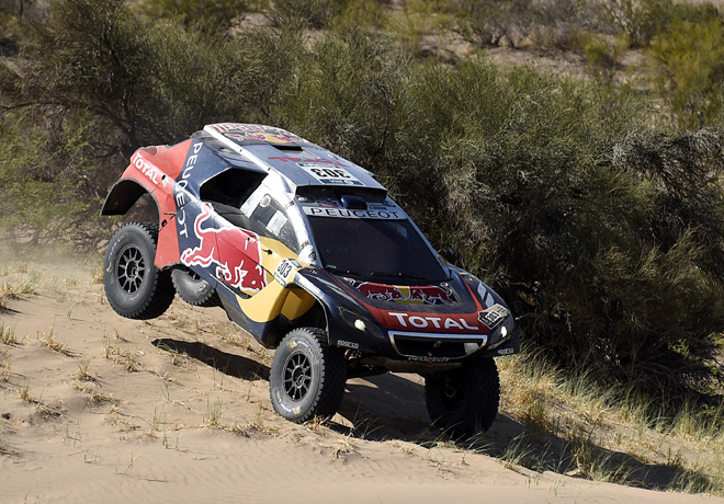 Al término de una jornada excepcional, Peugeot dio un duro golpe en esta primera parte de la etapa maratón. Stéphane Peterhansel se impuso, delante de sus compañeros de equipo Carlos Sainz y Sébastien Loeb. Nasser Al Attiyah (Mini), cuarto, impididió que Peugeot cope todos los primeros puestos, sacando a Cyril Despres una ventaja de 57 segundos.