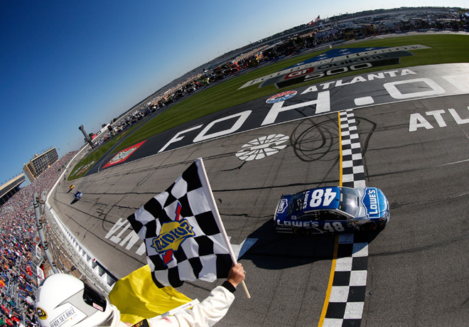 Jimmie Johnson (Chevrolet) fue el vencedor de la competencia disputada en el óvalo de Atlanta, y con su victoria igualó la cantidad de triunfos de Dale Earnhardt padre.