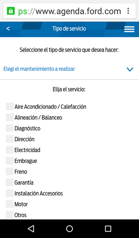 Además de las comodidades, la reserva en tiempo real brinda transparencia en la atención con la publicación de la lista de precios de aquellos servicios con precio sugerido por Ford. Las otras opciones incluyen la reserva de servicios de diferente índole como por ejemplo la revisión del sistema de aire acondicionado, motor, frenos, sistema eléctrico, escape y suspensión entre otros.
