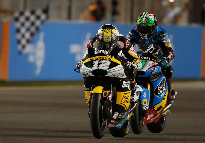 La primera ronda de la temporada del Campeonato del Mundo de Moto2 disputada en el Circuito Internacional de Losail terminó con la victoria de Thomas Luthi (Garage Plus Interwetten). El piloto suizo subía a lo alto del podio acompañado por Luis Salom (Stop and Go Racing Team) y Simone Corsi (Speed Up).