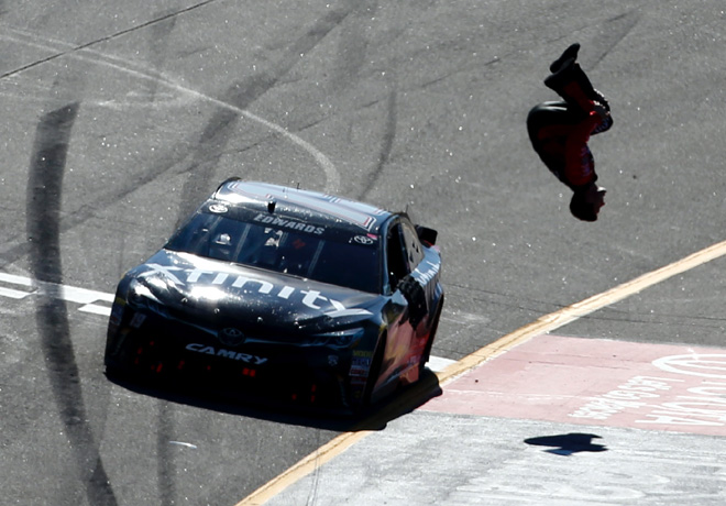 Edwards, quien fue el lÃder de la competencia durante 151 vueltas sobre las 400 pactadas, ganó por segunda vez consecutiva. Su compañero en el equipo Joe Gibbs Racing, Kyle Busch, quien lideró 78 vueltas, habÃa ganado las dos carreras anteriores.
