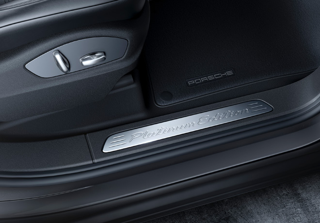 Al entrar en el vehículo se percibe la categoría especial de este Cayenne, pues la moldura inferior de cada una de las puertas lleva una placa de acero inoxidable con la inscripción ‘Platinum Edition’. En el Cayenne S E-Hybrid Platinum Edition estas molduras de las puertas se iluminan y muestran el nombre del modelo. Otro elemento adicional destacado que forma parte del equipamiento de serie es el sistema Porsche Communication Management (PCM) de última generación y un equipo de sonido BOSE® Surround. El tablero está decorado con un elegante reloj analógico, y el Cayenne S E-Hybrid también lleva un sistema de climatización que funciona con el auto parado.