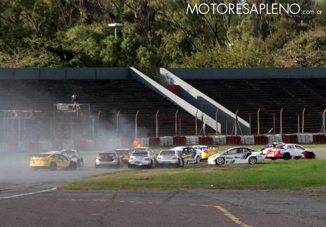 En los primeros metros de carrera se produjo un choque múltiple en el que Santiago Mallo se llevó la peor parte ya que sufrió el incendio de su Ford Focus III. Los bomberos ingresaron rápidamente y lograron apagar el fuego en la unidad de la Escudería FELA. Como consecuencia de este toque de carrera, Herrera y Vuyovich también quedaron fuera de competencia.