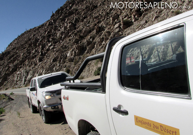 Luego de la largada, los periodistas a bordo de tres camionetas 4×4 conducidas por eximios hombres al volante, comenzamos nuestro raid, el mismo que realizan las corredoras.