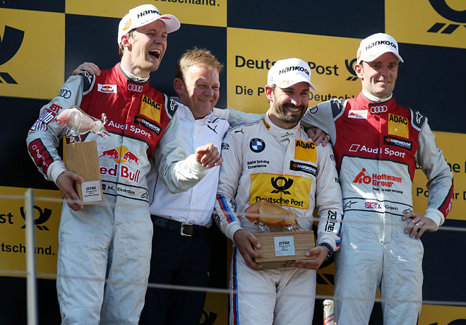 Luego de 42 giros al circuito austriaco de Spielberg de 4.326 metros de extensión, el piloto del BMW Timo Glock se impuso en la segunda competencia del fin de semana. Segundo arribó Mattias Ekström (Audi), a 2 segundos 215 milésimas del vencedor, y tercero Jamie Green (Audi). Esta competencia, a diferencia de la de ayer, contemplaba una detención obligatoria en boxes.