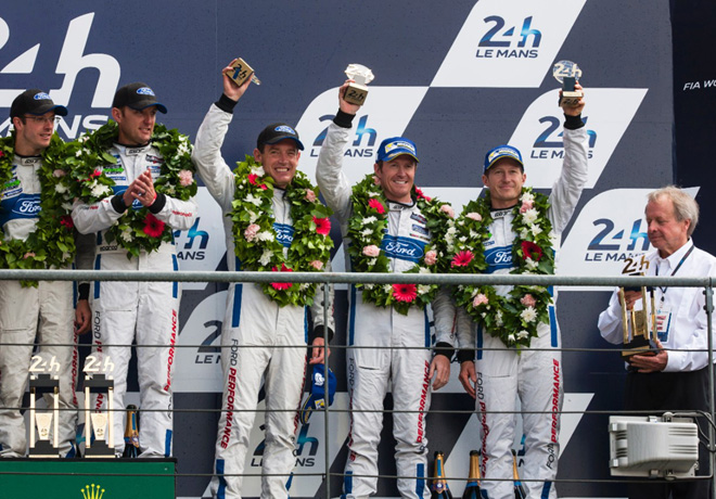 “Construir un auto nuevo y correr en Le Mans es una tarea monumental” comentó Mark Fields, CEO de Ford Motors Company. “Nos enfrentamos y vencimos el mayor desafío del automovilismo mundial: las 24 Horas de Le Mans. Fue increíble compartir este evento con nuestros distribuidores, propietarios, empleados, patrocinadores e invitados, todos con mucho orgullo de ser parte de la familia Ford. Cada fabricante de la clase GTE Pro luchó con lo mejor que tenía y estamos entusiasmados de haber desempeñado nuestro papel de la mejor forma en esta increíble carrera”.