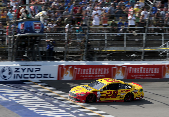 HabÃa una gran diferencia entre la victoria de Logano en Michigan y su victoria el 21 de mayo en la carrera NASCAR Sprint All-Star en Charlotte. Este triunfo marcó el pase de Logano a la segunda fases de la Caza.