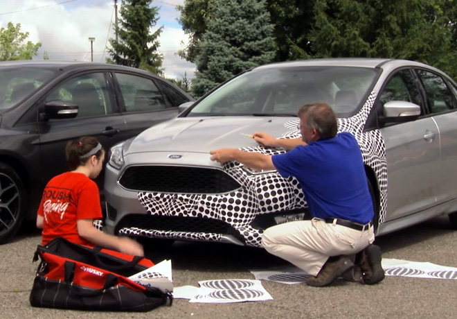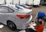 Ya son cosa del pasado los días en los que una fina capa de film alcanzaban para disimular el último desarrollo. Ese revestimiento pesado y difícil de aplicar aún hoy se utiliza en algunos modelos de prueba, aunque Ford está dando paso a un método más eficiente que se conforma en unos vinílicos adhesivos con estilos y patrones de diseño más modernos que engañan a los ojos y esconden las líneas de la carrocería. Crean una ilusión óptica que dificultan ver los detalles y hacen que las fotos se vean difusas.