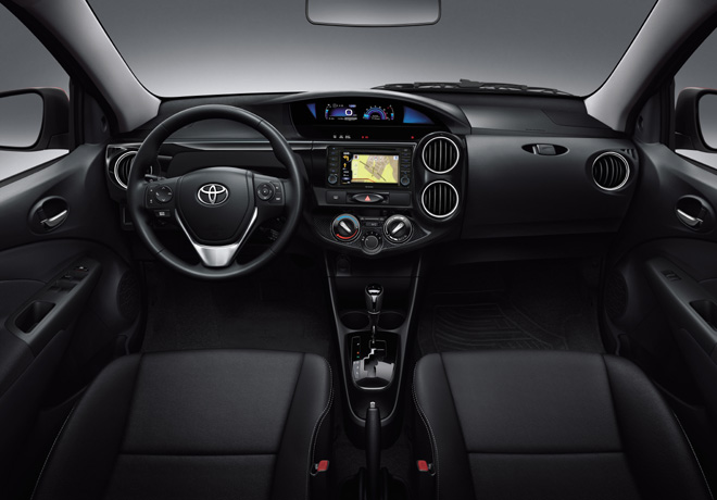 Dentro del equipamiento de confort que incorpora Etios Platinum se destacan los asientos tapizados en cuero; audio con navegador satelital (GPS); pantalla táctil de 6,2”; televisión digital; reproductor de DVD, Mp3; CD; Bluetooth; USB; monitor de cámara de estacionamiento en pantalla LCD y sensor de estacionamiento trasero.