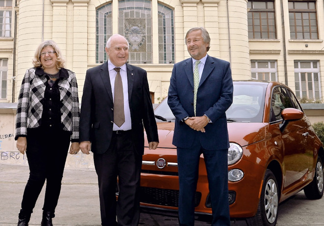 El Gobernador de Santa Fe, Miguel Lifschitz; la Ministra de Educación, Claudia Balagué, y el Presidente de FCA Automobiles Argentina, Cristiano Rattazzi, presidieron el acto en el que se firmó un acuerdo que contempla la actualización docente en el campo automotor de parte de la empresa y la donación de 2 unidades Fiat 500 para fines didácticos.