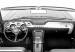 - 1964: La primera generación del Mustang introdujo el patrón clásico de capó largo y cabina angosta que se transformó en el estilo de la línea. El interior, de doble cabina, tenía un volante emblemático de tres rayos de aluminio con aro símil madera y bocina en el centro. Su gran diámetro, de 16 pulgadas, facilitaba las maniobras, ya que la asistencia hidráulica era opcional.