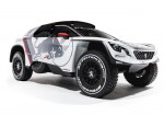 El nuevo Peugeot 3008 DKR propone una visión extrema del nuevo SUV 3008, que subraya su identidad y proporciones. El auto de carrera continua siendo fiel a la actitud y a la postura del SUV, con una cabina negra colocada sobre un ancho generoso y un ribete cromado que resalta la línea del techo. El aspecto delantero y trasero de los dos vehículos es similar en los proyectores, parrilla y en la franja cruzada por garras rojas.