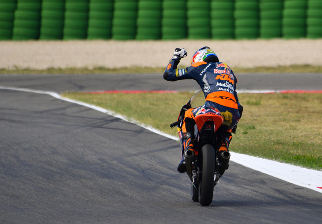 Bastianini llegó a la línea de meta a 0.262 segundos del piloto de KTM. El italiano no pudo repetir el triunfo de 2015, pero logró su mejor resultado de la temporada ya que hasta ahora había subido al tercer escalón del podio en tres ocasiones, la última vez en el GP de Austria. Bastianini intentó adelantar a Binder en la última curva, pero el sudafricano defendió su posición en forma efectiva.