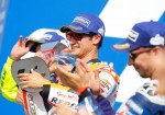 El podio lo completó Lorenzo, quien de esta manera rompe una racha de dos carreras lejos de las posiciones de líder. El de Yamaha nunca había ganado en Misano partiendo desde la pole, y hoy volvió a repetirse la historia ya que arribó al final a más de un segundo y medio de su compañero de equipo.