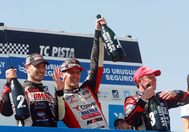 Segundo terminó Facundo Ardusso (Dodge) y tercero Guillermo Ortelli (Chevrolet), en una acción sorpresiva ya que el de Las Parejas dejó pasar al de Salto para que intentara superar al puntero Rossi en las últimas vueltas, porque el Chevrolet tenÃa mejor ritmo que el Dodge; pero como Ortelli no pudo lograr su objetivo volvió a cederle el puesto a Ardusso para que terminara segundo ¿órdenes de equipo en el JP Racing?.