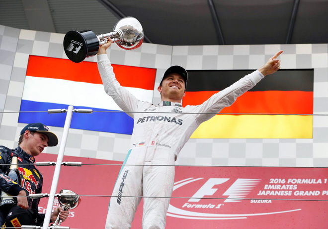 Nico Rosberg ganó el Gran Premio de Japón disputado en el circuito de Suzuka, y con su victoria aumenta la ventaja en el campeonato de pilotos a 33 puntos sobre Lewis Hamilton, quien finalmente terminó tercero luego de una nueva mala salida que lo relegó a la octava posición, por detrás del Red Bull de Max Verstapen. Por su parte, el equipo Mercedes logró su tercera corona consecutiva en el torneo de constructores.