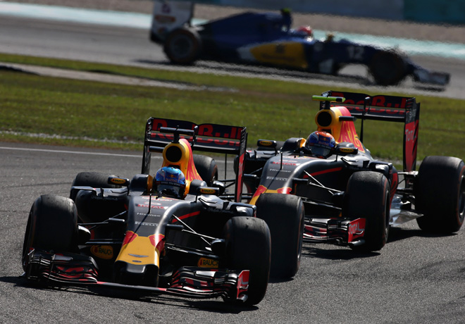 Daniel Ricciardo fue el ganador del Gran Premio de Malasia, superando a su compañero en Red Bull Racing, Max Verstappen, por 2.443 segundos. Tercero terminó Nico Rosberg con el Mercedes, quien ante el abandono de Lewis Hamilton por la rotura del motor de su Mercedes alargó la diferencia en el campeonato a 23 unidades.