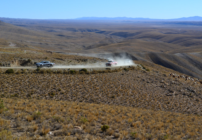 El tercer dÃa, tal vez el más exigente para las Hilux, fue el turno de partir con temperaturas bajo cero desde Santa Catalina hacia el sur, tomando la Ruta 40 hasta la localidad de Susques, pasando previamente por las muy pintorescas localidades de Cusi Cusi, Orosmayo, Coranzulà y por el impresionante Valle de la Luna jujeño. Por la tarde, la caravana arribó a las Salinas Grandes, un salar limÃtrofe de las provincias de Salta y Jujuy que se extiende sobre un área de 212 km2, a una altitud de casi 3.500 metros sobre el nivel del mar. El dÃa finalizó con la caravana -que nuevamente superó los 4.100 metros sobre el nivel del mar en Abra del Potrerillos- avanzando por la Cuesta de Lipán hasta retomar la Ruta 9 y alcanzar nuevamente la localidad de Huacalera.