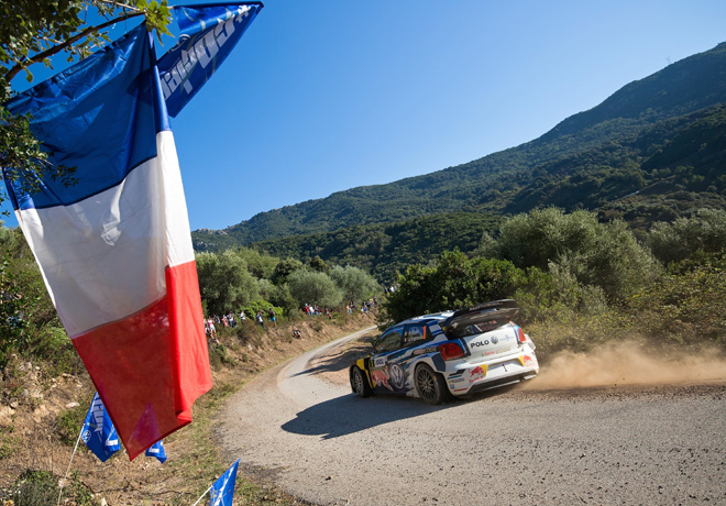 Sébastien Ogier mantuvo el control de la competencia en Córcega, después de una estrategia libre de riesgos durante la segunda jornada del sábado. Ganó dos de las cuatro especiales en las carreteras de montaña próximas a Bastia durante la jornada más larga del rally. Pero a medida que las condiciones se fueron deteriorando al final del día, el francés reguló su ritmo y afrontará el último día de competición con una ventaja de 46.5 segundos.