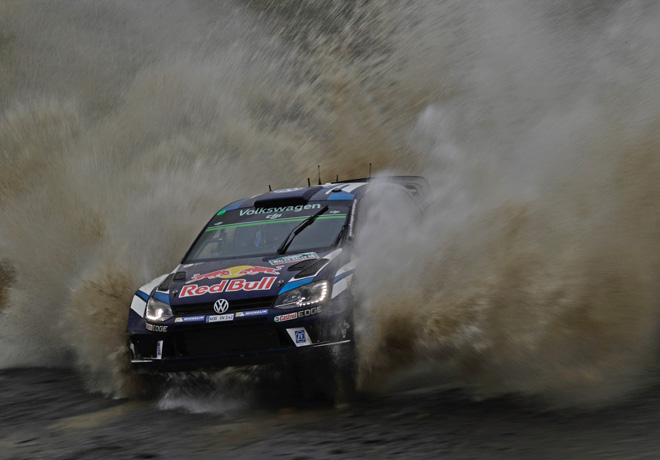 Sébastien Ogier ha dominado en la niebla y barro para liderar el Rally de Gales al final de la jornada de hoy, a pesar de sufrir algún problema que ha amenazado su posición. Aventaja a Ott Tänak por 37.3 segundos a pesar de un inconveniente en la transmisión cerca del final de la última especial disputada en el centro de Gales y que ha limitado el rendimiento de su Volkswagen Polo R WRC.