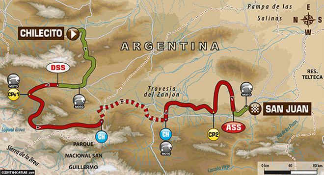Frente a esta situación, estando el tramo de enlace cortado, la mayorÃa de los vehÃculos, competidores, asistencia y equipos de logÃstica de la caravana del Dakar fueron desviados por un itinerario alternativo que pasa por San Antonio de los Cobres, incrementando la distancia del enlace en unos 200 km., y no llegarán al vivac de Salta a tiempo para poder tomar la salida. Además, los vehÃculos de mayor tamaño no podrán transitar por dicha ruta.