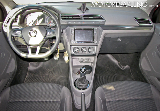 El nuevo Gol presenta un interior renovado, con buena calidad de materiales y terminación. Tiene un diseño elegante y moderno, con un nuevo panel frontal más estilizado y todo el equipamiento al alcance del conductor. Nuevo diseño del volante multifunción con comando de audio, teléfono y multimedia