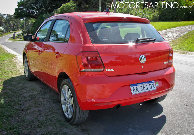 En lo que respecta a la parte posterior, los faros y paragolpes tuvieron un pequeño retoque. La tercera luz de stop sigue ubicada en el pequeño alerón. En cuanto a las dimensiones, tiene 3.897 mm de largo; 1.656 de ancho; 1.464 de alto, y una distancia entre ejes de 2.466 mm. Todo este conjunto le da al nuevo Gol una buena imagen deportiva