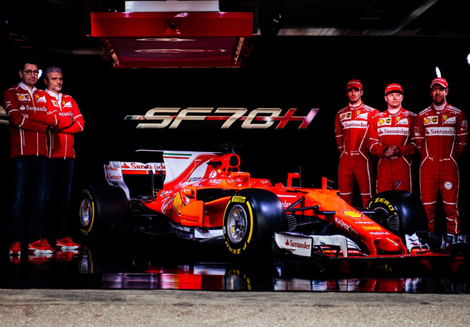 Ferrari presentó el coche con el que competirá en el Campeonato Mundial FIA 2017 de Fórmula Uno. El SF70H fue descubierto en el circuito italiano de Fiorano con sus pilotos Sebastian Vettel y Kimi Räikkönen.