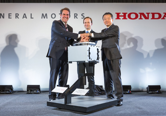 Honda y General Motors han estado trabajando juntas a través de un convenio de colaboración anunciado en julio de 2013. El acuerdo estableció el desarrollo conjunto de la próxima generación de sistemas de pilas de combustible y de las tecnologías de almacenamiento de hidrógeno. Las empresas integrarán los equipos de desarrollo y compartirán sus propiedades intelectuales, para crear una solución comercial más accesible para los sistemas de pilas de combustible y almacenamiento de hidrógeno.