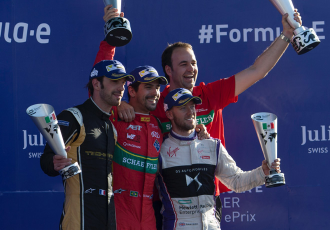 Di Grassi dominó con seguridad y se quedó con la victoria en México, mientras que Vergne peleó la segunda colocación con Jérôme D’Ambrossio (Dragon Racing) hasta las últimas curvas, cuando el alemán debió abandonar al agotarse la batería. A su vez, Bird escaló posiciones y alcanzó a completar el podio.