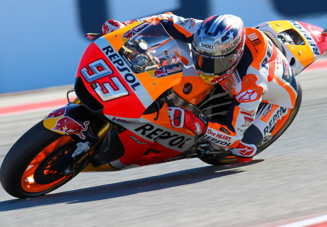Cinco de cinco y una carrera perfecta para Marc Márquez (Honda). Trazó una estrategia impoluta antes de la salida: fue el único de los favoritos que montó compuesto duro, tanto delante como detrás. Hizo una carrera muy táctica. Esperó a la segunda mitad de carrera para sobrepasar a Pedrosa y marcar el ritmo que tenía guardado. Por fin para Márquez este año. Cinco victorias consecutivas en Austin, su circuito talismán, sólo él ha ganado aquí.