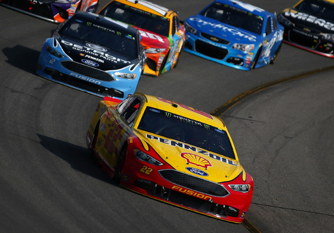 Matt Kenseth lideró las 100 primeras vueltas de la carrera para ganar la Etapa 1; luego pinchó un neumático y finalmente terminó en el puesto 23, mientras que Keselowski venció en la Etapa 2.