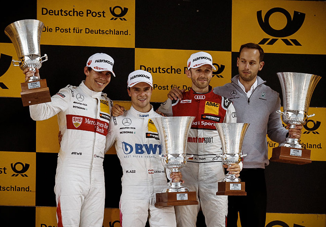 Auer consiguió el mejor lugar de salida, controlando a sus rivales hasta la bandera de cuadros. Segundo quedó su compañero en Mercedes, Robert Wickens, y tercero el piloto del Audi RS 5 René Rast, quien obtuvo su primer podio en apenas su sexta carrera del DTM. El piloto alemán consiguió adelantar a Maxime Martin (BMW M4) a poco de finalizar la carrera, tras una impecable estrategia en el box de Audi que alargó su parada hasta el final.