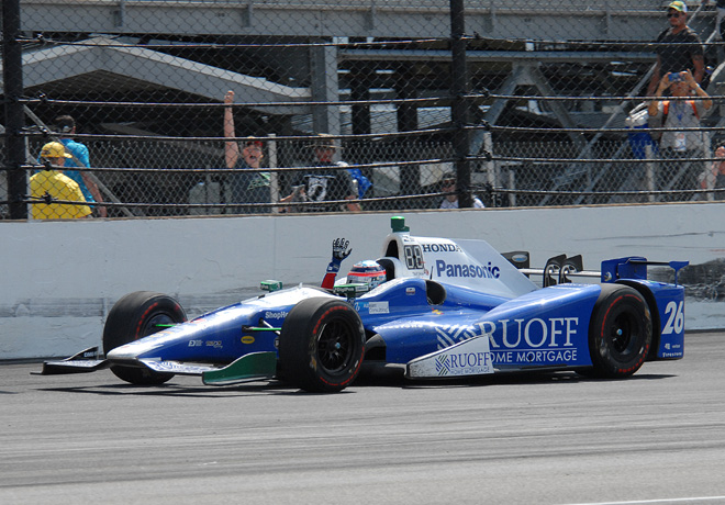 El dos veces campeón de Fórmula Uno, Fernando Alonso, quien se ausentó del Gran Premio de F1 en Mónaco para debutar en Indianápolis, lideró la carrera durante 27 vueltas antes de que el motor de su Honda se rompiera faltando solamente 21 giros para el final cuando estaba ubicado quinto.