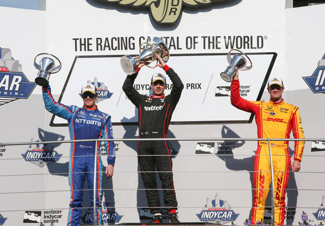 En su carrera número 175 en Indy, Power cruzó la lÃnea de meta 5.283 segundos por delante de Scott Dixon, para conseguir el triunfo número 30 en sus 13 años de actividad. Tercero finalizó Ryan Hunter-Reay.