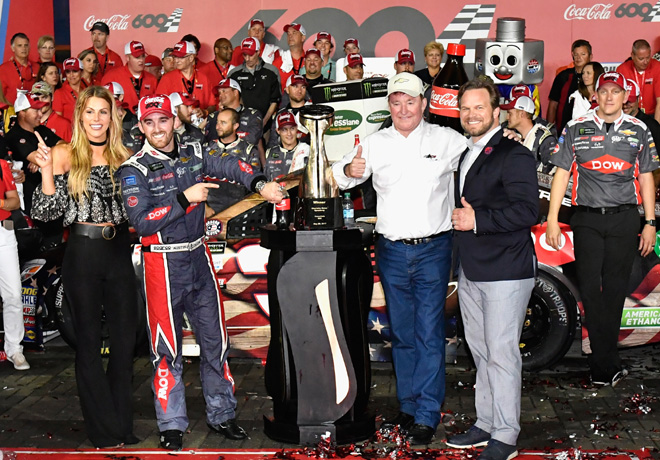 Finalmente el ganador fue Austin Dillon (Chevrolet), quien logró su primera victoria de la Copa NASCAR. El vencedor fue uno de los ocho pilotos que se quedaron en la pista cuando la mayoría de los competidores ingresó a boxes para reponer combustible, porque adoptó una estrategia de ahorro durante toda la carrera. La victoria prácticamente asegura a Dillon su clasificación para los playoffs por primera vez en su carrera.