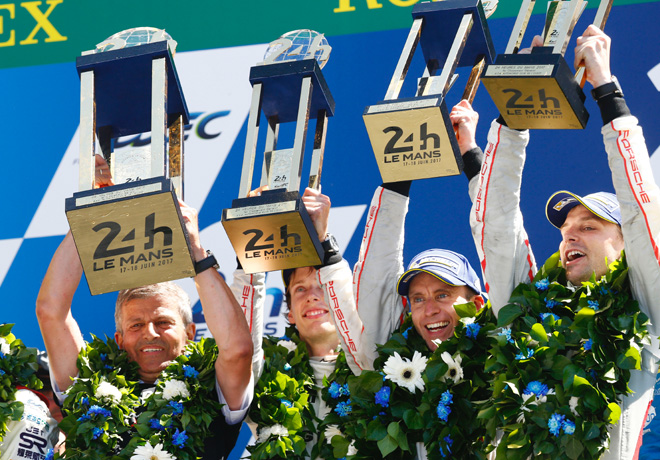 El Porsche 919 Hybrid número 2 conducido por Timo Bernhard, Earl Bamber y Brendon Hartley fue el vencedor de las 24 Horas de Le Mans, la clásica prueba de resistencia más exigente del mundo. Este triunfo fue el 19º de la casa de Stuttgart.
