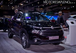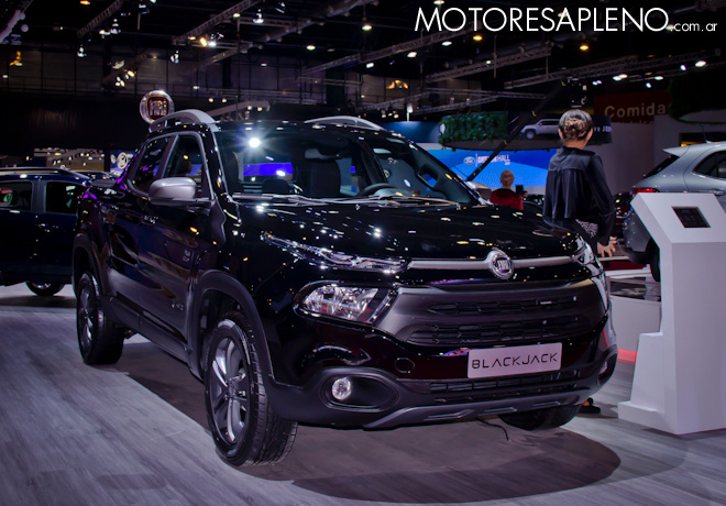 Por un lado, en uno de los laterales del stand, se exhibe un Fiat Mobi Way Live on y una pick up Fiat Toro Blackjack, una versión limitada del modelo.
