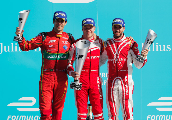 Félix Rosenqvist (Mahindra) consiguió la victoria en la Fórmula E en la competencia de hoy en Berlín. Segundo terminó Lucas di Grassi (ABT Schaeffler Audi Sport) y tercero el compañero de equipo del vencedor Nick Heidfeld (Mahindra). Promediando la competencia el sueco superó a di Grassi para encaminarse a su primer triunfo.