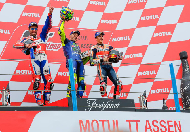 MotoGP – Assen 2017 – Danilo Petrucci – Valentino Rossi – Marc Marquez en el Podio | Motores a Pleno ® ::: 34º Aniversario / 25 años en internet :::