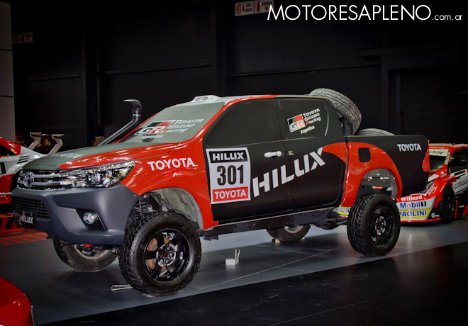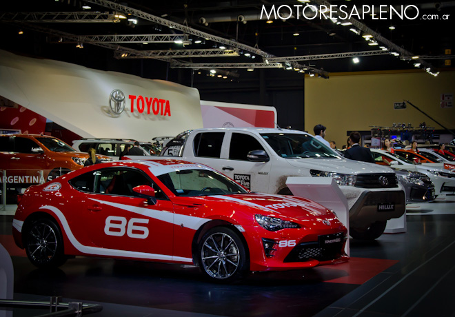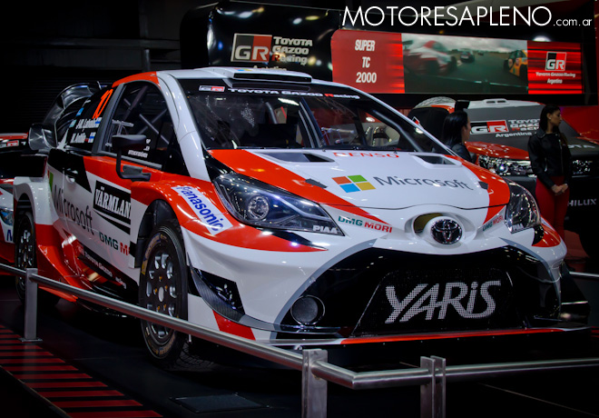 En el Salón exhibe no sólo los dos vehículos que participan de la competencia en Argentina (el Corolla del Súper TC2000 y el Camry recientemente incorporado al Top Race V6), sino también un Toyota Hybrid que participa del WEC; un Yaris WRC de reciente paso por la provincia de Córdoba, y el 86 Pace Car del TC.