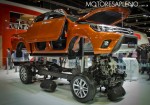 Además, quienes recorran esta zona del stand podrán conocer en detalle el chasis de la Hilux y un proyecto especial realizado por un equipo de colaboradores de Toyota Argentina en Zárate: una Hilux que se eleva, separando su carrocería del chasis y desplegándose en diferentes partes.