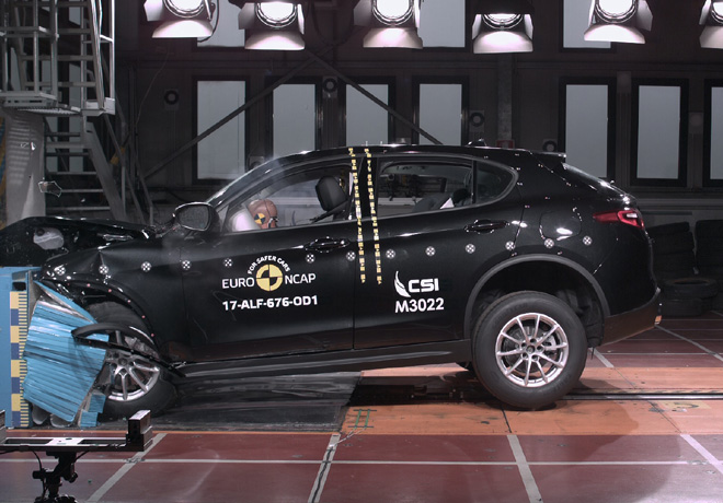 El poderoso Alfa Romeo Stelvio, el SUV de la casa italiana que llegará a la Argentina, obtuvo las prestigiosas cinco estrellas en las pruebas de choque de la EuroNCAP con un resultado del 97 % en protección de los ocupantes adultos, un excelente puntaje teniendo en cuenta el severo sistema de clasificación introducido en 2016.