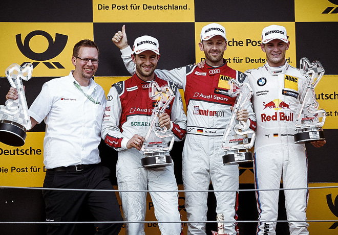 El piloto de Audi convirtió la pole position en una victoria dominante, para lograr su segundo éxito en el DTM. Con 9 de las 18 competencias fijadas en el calendario Rast es el líder del campeonato. «Fue una carrera casi perfecta», resumió el ganador. «Mi comienzo no fue óptimo; pero después de eso, salió muy bien”.