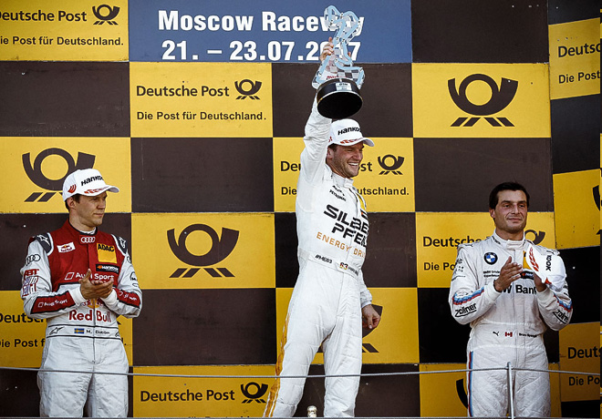 El DTM disputó hoy su segunda competencia del fin de semana en Rusia, y después de 36 vueltas al circuito de 3.931 metros ubicado en Wolokolamsk, el piloto del Mercedes-AMG Maro Engel se llevó la victoria, la primera en DTM después de 52 presentaciones, aventajando por 376 milésimas a Mattias Ekström (Audi RS 5), nuevo lÃder del campeonato, y por 3.981 al tercero Bruno Spengler (BMW M4).