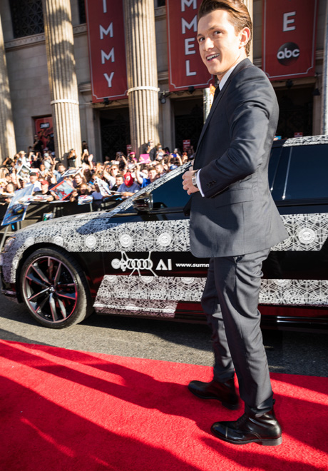 Tom Holland, quien interpreta a Peter Parker/Spider-Man, fue chofer por la alfombra roja en el teatro chino TCL, mientras que Robert Downey Jr. (Tony Stark/Iron Man) y Jon Favreau (Happy Hogan) llegaron juntos en un Audi R8 Spyder color negro.