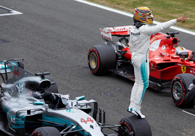 Lewis Hamilton con el Mercedes logró la pole position para el Gran Premio de Gran Bretaña en Silverstone, e igualó el récord de Jim Clark -con cinco- tras vencer a Kimi Räikkönen (Ferrari) por 547 milésimas. El británico efectuó una fantástica vuelta final para conseguir la pole número 67 de su carrera, con la mayor diferencia de la temporada con su escolta hasta este momento.