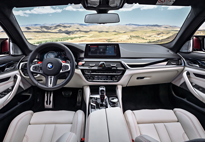 Entre otros atributos, el nuevo BMW M5 viene como estándar con llantas pulidas de aleación ligera de 19 pulgadas en color Orbit Grey y neumáticos especÃficos M 275/40 R 19 adelante y 285/40 R 19 atrás. La especificación estándar para el nuevo BMW M5 también cuenta con asientos M de piel Merino y ajuste eléctrico. La lista de opciones incluye asientos multi-funcionales M recientemente desarrollados, los cuales sobresalen con su construcción de tipo cubo y un soporte lateral aún mejor.
